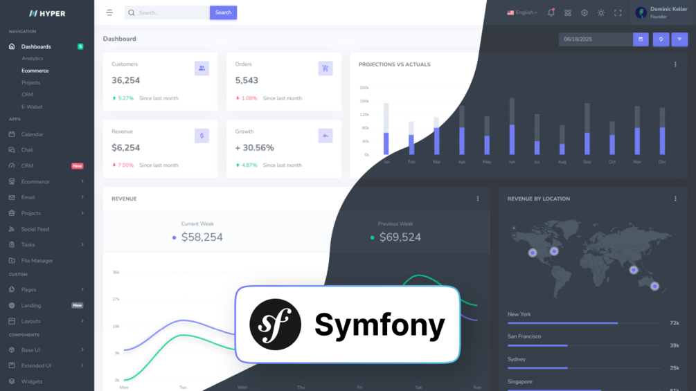Hyper is a fully-featured dashboard and admin template built with Symfony 7 and Bootstrap 5. It leverages Symfony’s powerful MVC framework, Twig templating engine, and robust security features to deliver scalable and production-ready web applications. Hyper includes a rich set of UI elements, components, widgets, and pre-built pages, helping you develop faster and more efficiently. Its clean, modular, and responsive layouts make it easy to build SaaS platforms, custom admin panels, dashboards, CRMs, CMSs, and e-commerce backends. With reusable Twig templates, a structured codebase, Symfony Flex integration, REST API support, and detailed documentation, Hyper Symfony empowers developers to create modern applications quickly while following best practices for performance, maintainability, and security.